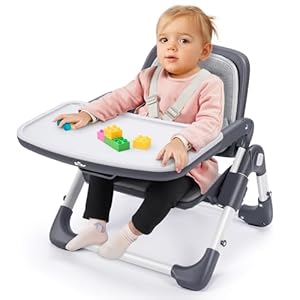 Bear Booster Seat for Toddlers, Adjustable Height Baby Chair, Compact Fold Full-Steel Toddler Booster Seat with Removable Tray for Dining Table, Great for Indoor Outdoor Camping Travel, Grey