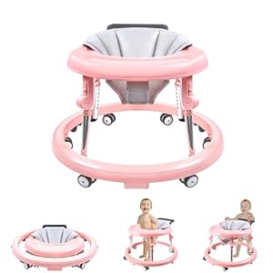 Baby Walker with Wheels, Activity Center with Mute Wheels Anti-Rollover, 5-Position Height Adjustable Foldable Baby Walker for Boys and Girls from 6-18 Months with Footrest