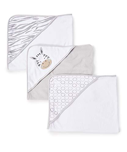 Spasilk Baby 3 Pack Soft Terry Hooded Towel Set for Newborn Boys and Girls, Grey Zebra