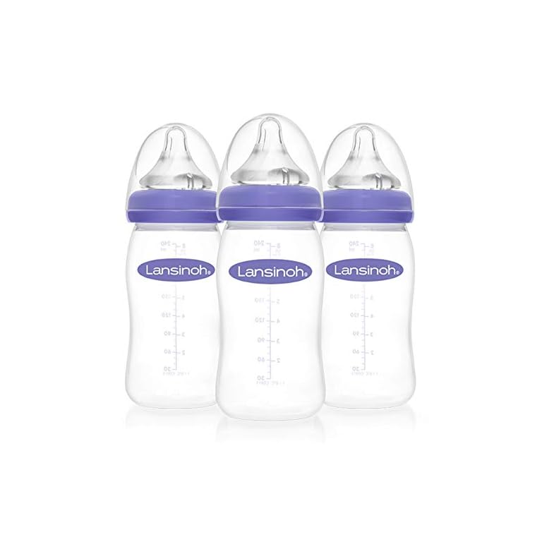 Lansinoh Anti-Colic Baby Bottles for Breastfeeding Babies, 5 Ounces, 3 Count, Includes 3 Slow Flow Nipples, Size S