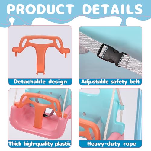 The baby swing outdoor is made of high-quality plastic and powder-coated metal, suitable for both indoor and outdoor use, allowing your little one to enjoy the fun of swinging anytime, anywhere.