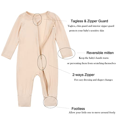 Aablexema Baby Footless Pajamas Zipper with Mitten, Rayon from Bamboo, Infant Long Sleeve Romper Pjs