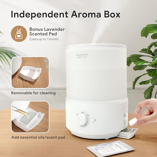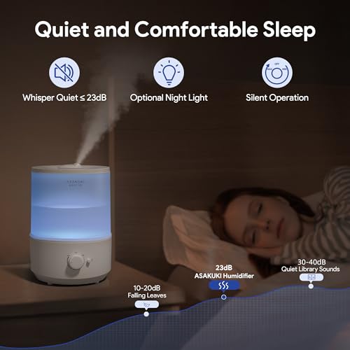 Adjust Your Mist Much Easier: Easily adjust the mist output of this room humidifier with a simple knob twist and a 360-degree rotatable nozzle. ASAKUKI cool mist humidifier helps you consistently balance and regulate the humidity in your home and breathe easier and healthier.