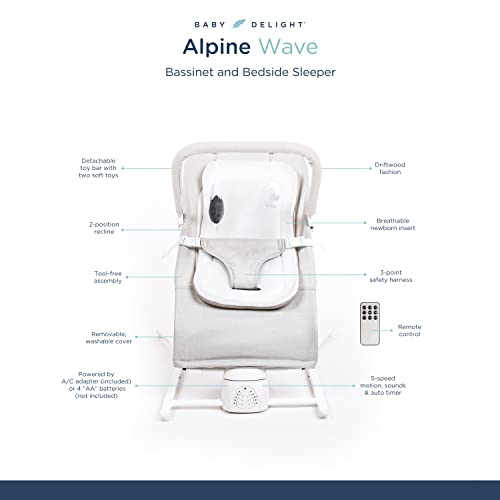 Baby Delight Alpine Wave Deluxe Portable Bouncer | Automated Motion Baby Bouncer | Infants 0 – 6 Months | Driftwood Grey