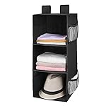 MAX Houser 3-Shelf Hanging Closet Organizer, Hanging Sweater Organizer, Foldable Hanging Shelves for Closet with 2 Velcro, Black