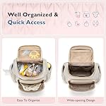 Well organized & Enough capacity- Compact size: 15″L × 12″W × 5.9″H, with 10 pockets in total for baby stuff, including 2 side pockets for tissue and bottle, a back pocket, an internal mesh pocket and 2 insulated pockets. Spacious enough to carry baby essentials in this diaper backpack