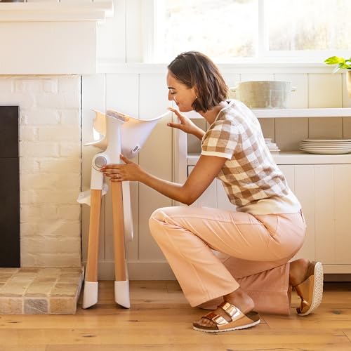 Munchkin® Float™ Foldable Baby and Toddler High Chair – Easy Clean, Compact and Lightweight, Great for Small Spaces, White with Wooden Legs