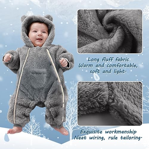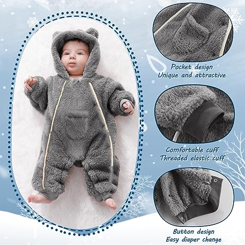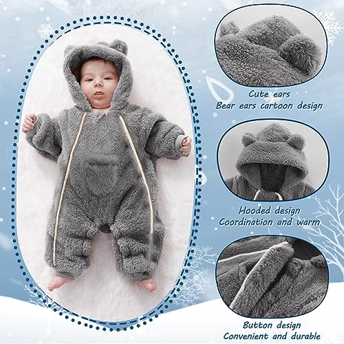 Newborn Baby Bear Onesie Outfit Suit Girls Boys Fleece Jumpsuit Romper Hooded Coat Winter Clothes Outwear Snowsuit