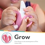 GENTLE CLEANING: Soft silicone bristles massage, soothe, and gently clean baby’s gums and new teeth