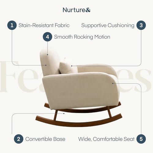 Nurture& The Rocking Chair – Smooth Rock for Ultimate Nursery Comfort and Relaxation, Effortlessly Transforms into a Modern Armchair, Ideal for Living Room and Bedroom. (Ivory)