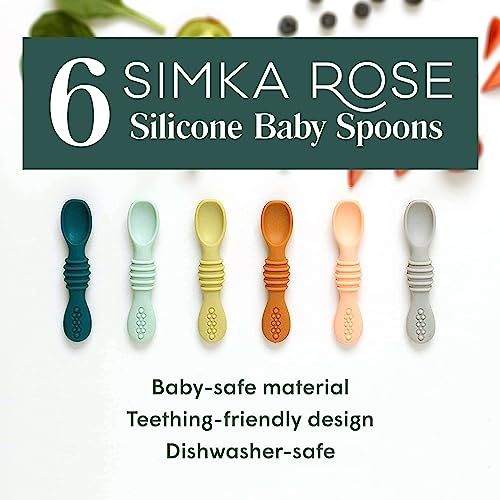 Simka Rose Silicone Baby Spoons Self Feeding 6 Months – First Stage Infant Spoons for Babies & Toddlers- Baby Led Weaning Spoons Set of 6- Easy on Gums Food Training Utensils Dishwasher Microwave Safe