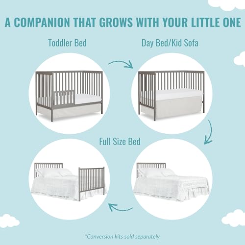 5-IN-1 CONVERTIBLE CRIB – A lifetime investment, the Synergy grows with your child, easily converting from a crib into a toddler, day and full-size bed; Toddler guardrail, stabilizer and full-size rail sold separately. Features 3 mattress height settings