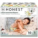 The Honest Company Clean Conscious Diapers | Plant-Based, Sustainable | So Delish + All The Letters | Club Box, Size 5 (27+ lbs), 50 Count