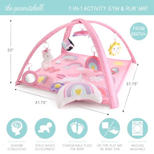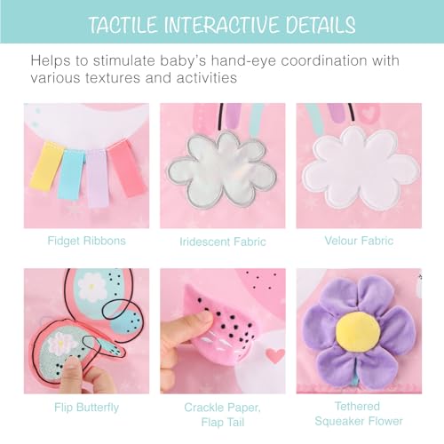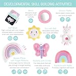 Developmental Stages Support – Promotes motor skills, sensory and cognitive development through a mirror, toys, rattle, crinkle, bell, fidget ribbons, and tummy time pillow. Suitable for various baby stages from tummy time to sitting up.