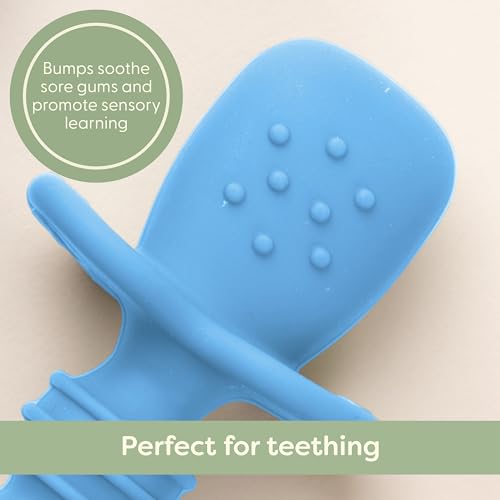 Get Those Gums Stimulated: Our baby spoons first stage come with textured areas beneath the spoon’s scoop. Each baby feeding spoon helps gum stimulation. Made of durable silicone material, this baby first spoon will also withstand any baby bite!